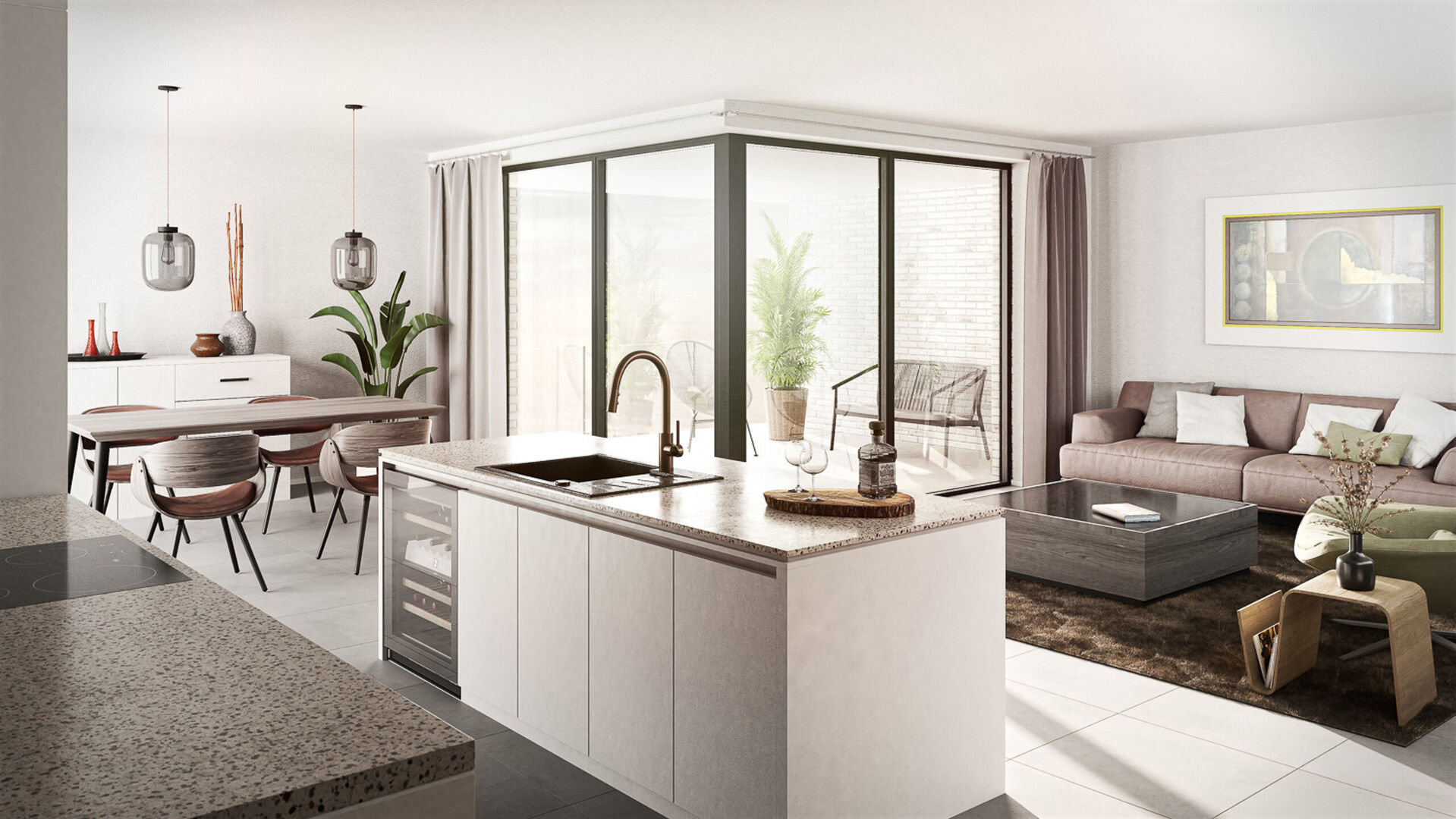 Stijlvol nieuwbouwappartement (83 m²) op de tweede verdieping met 2 slaapkamers en een terras (22m²).