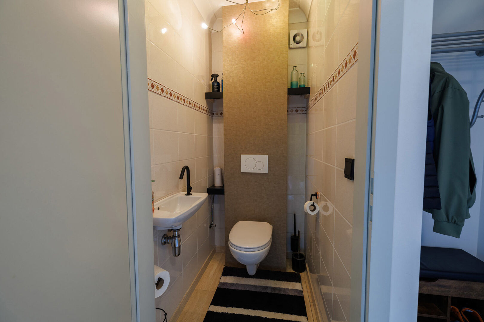 Verdieping 1: Inkom, toilet, living, keuken, wasplaats en terras