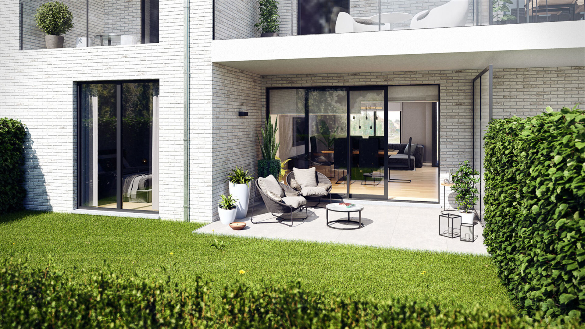 Gelijkvloers nieuwbouwappartement (80 m²) met 2 slaapkamers en een terras (17,98 m²).