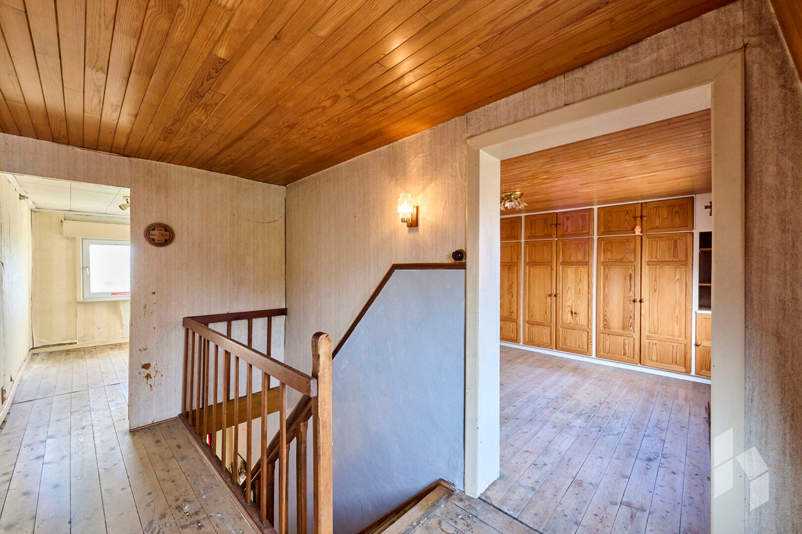 Overloop, twee grote slaapkamers en een tussenkamer