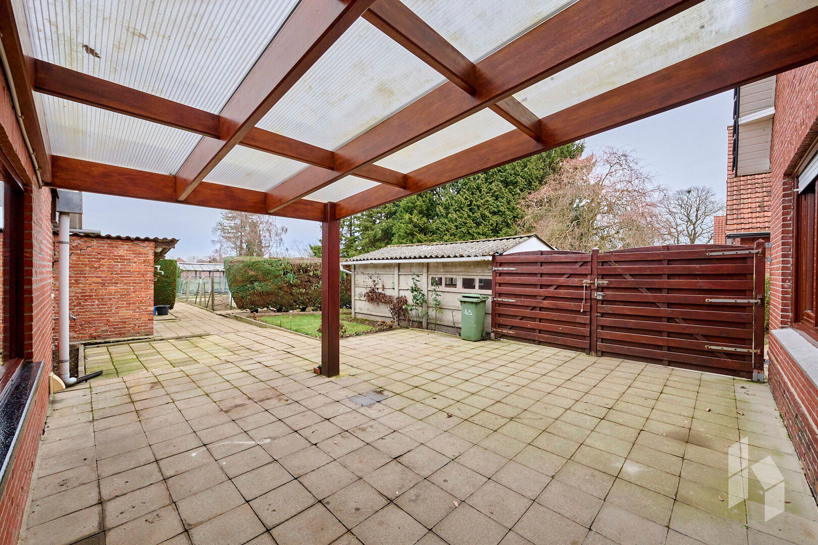 Haar zonnige tuin is ruim en omheind achteraan, voorzien van tuinbergingen en een garage.