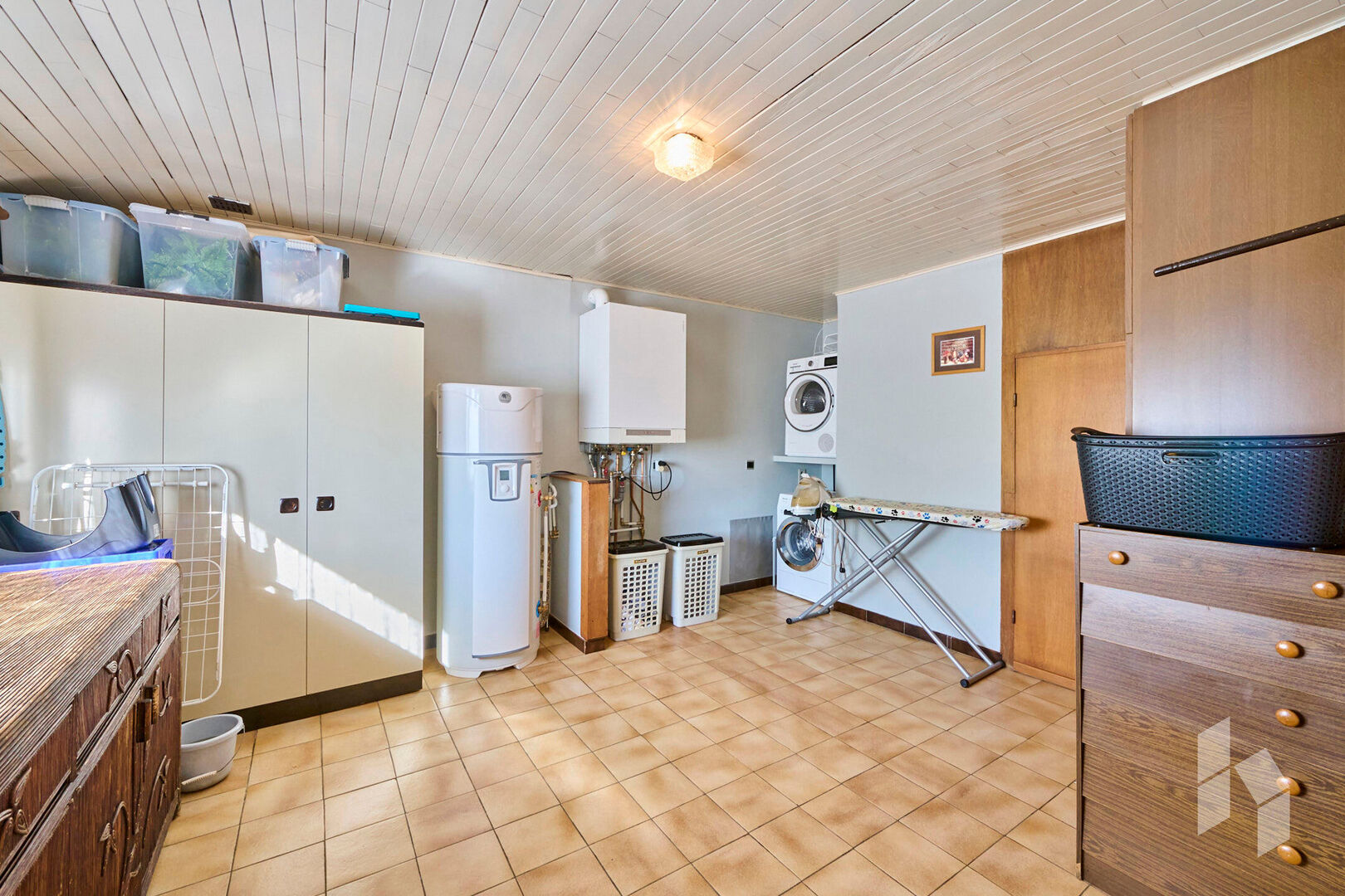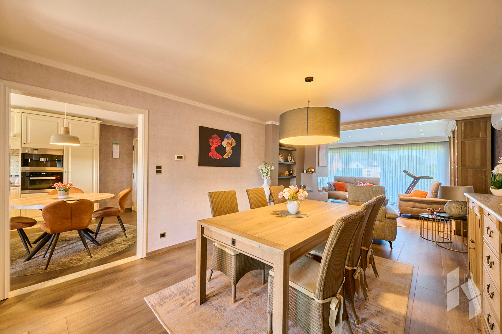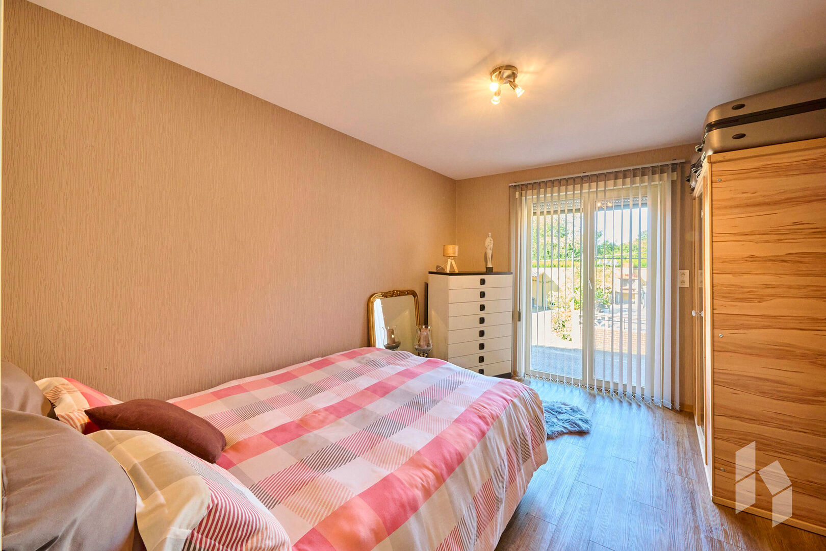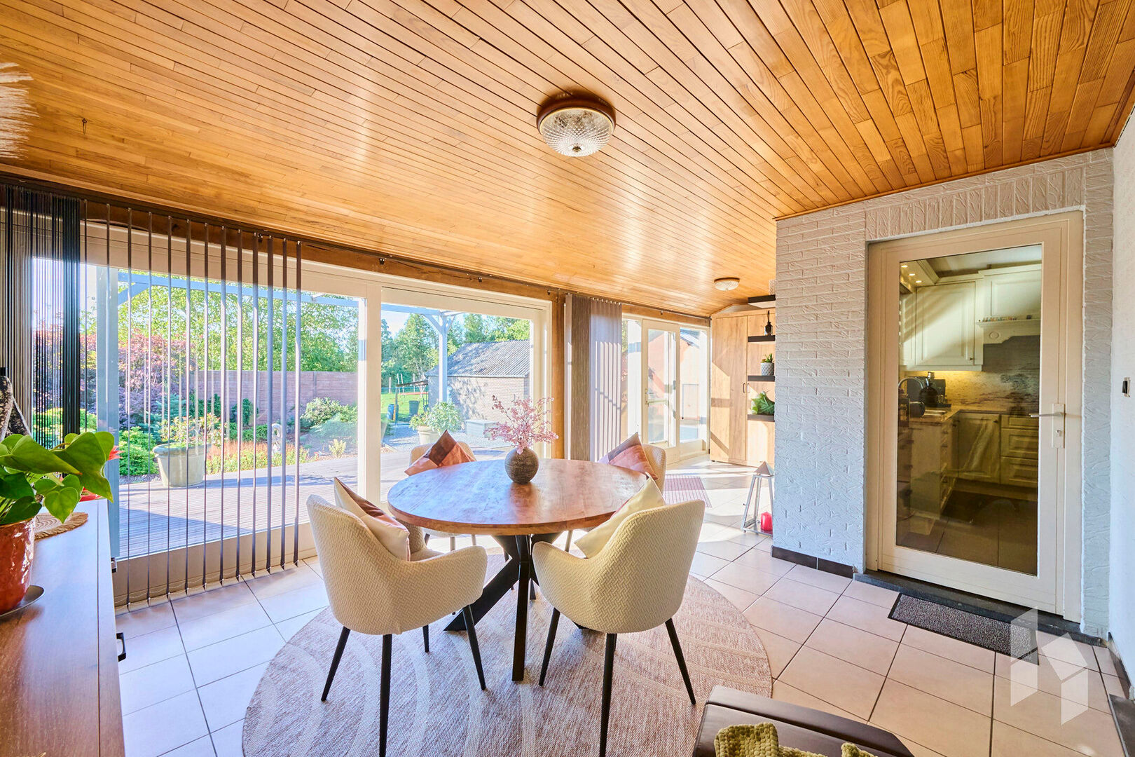 Zeer goed onderhouden, instapklare gelijkvloerse woning (189 m²) met een gezellige woonkamer met gashaard, een veranda uitkijkend op de tuin, 2 (mog.3) slaapkamers en een garage op een mooi perceel van 1778 m² nabij het centrum van Lommel.
