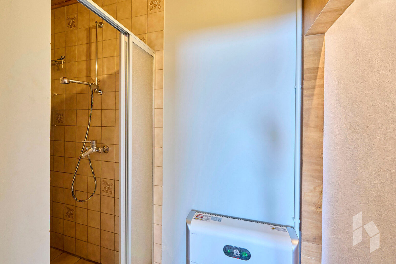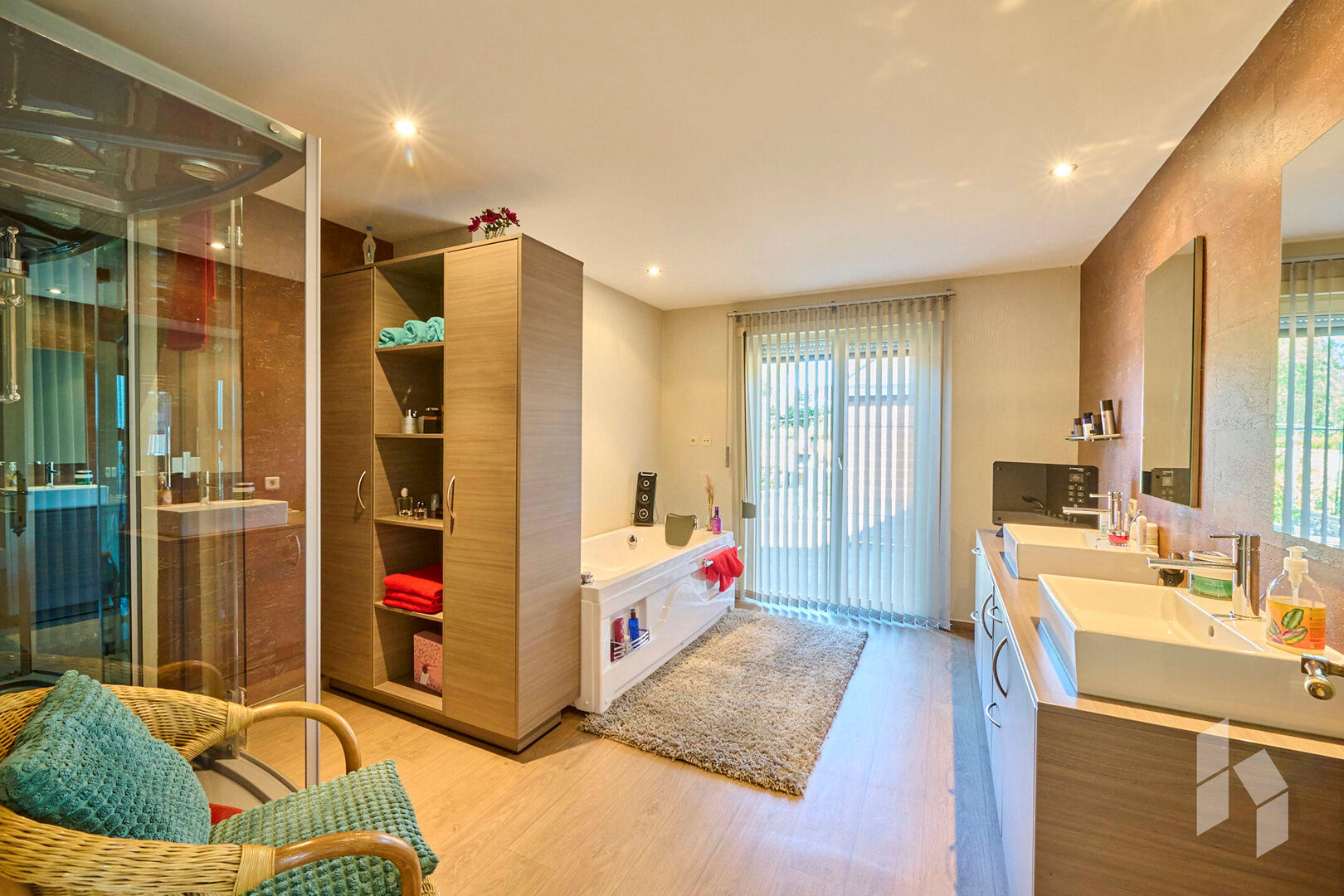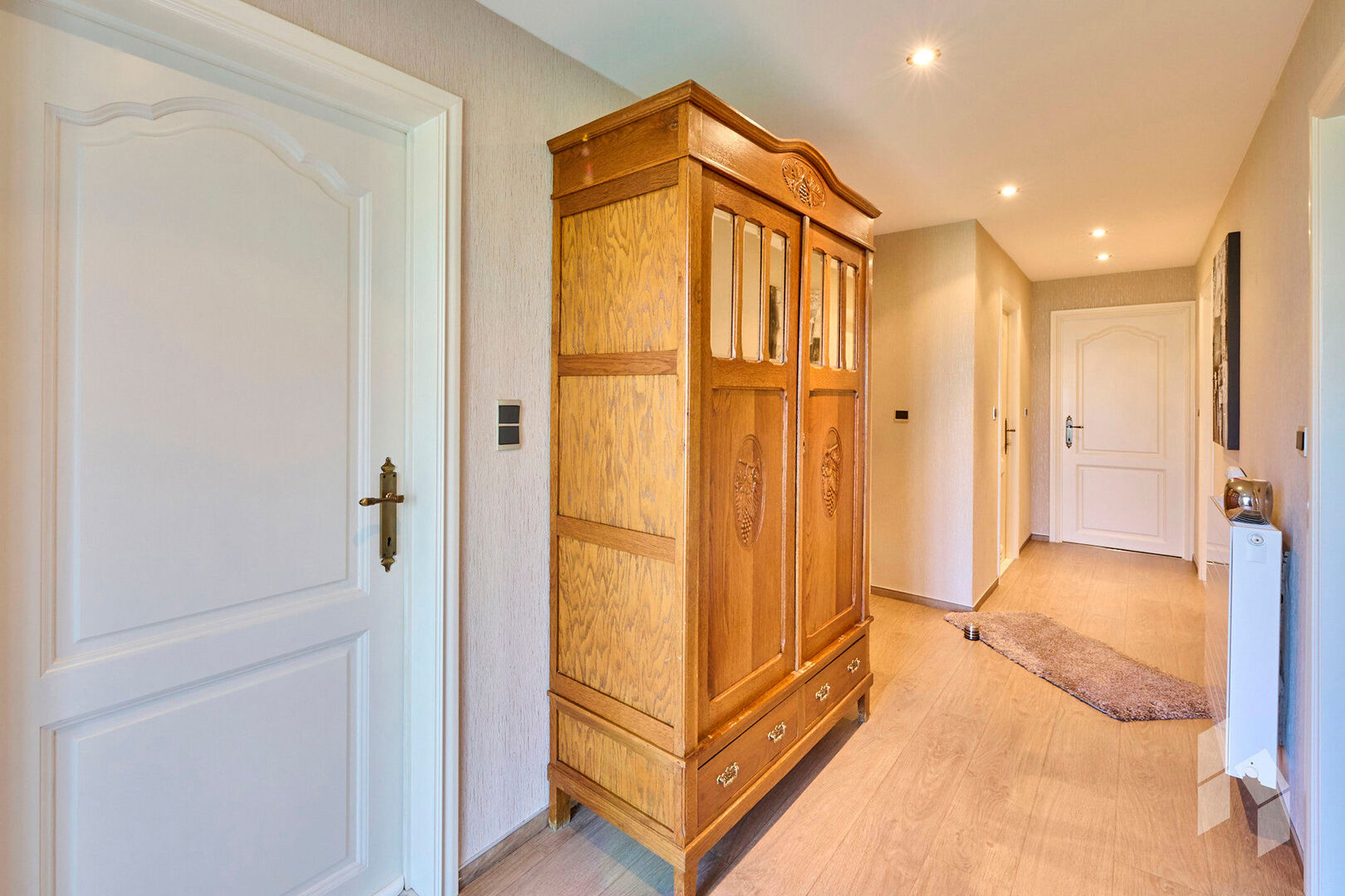 Gelijkvloers: inkomhal, woonkamer, keuken, veranda, 2 slaapkamers, dressing, toilet, badkamer, wasplaats, douchekamer