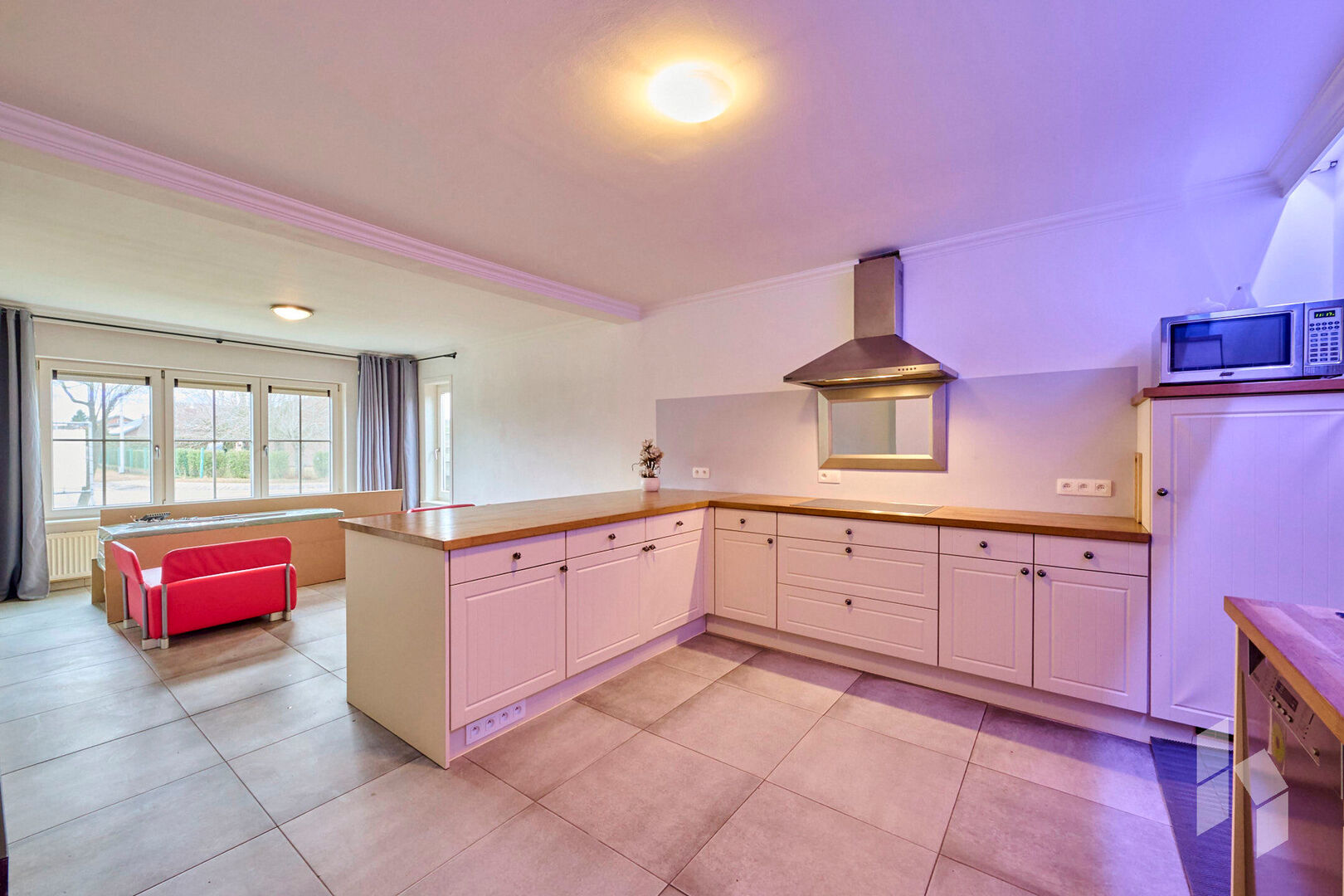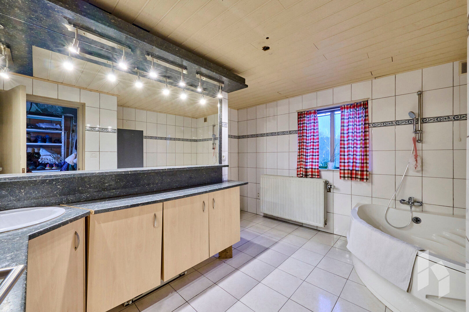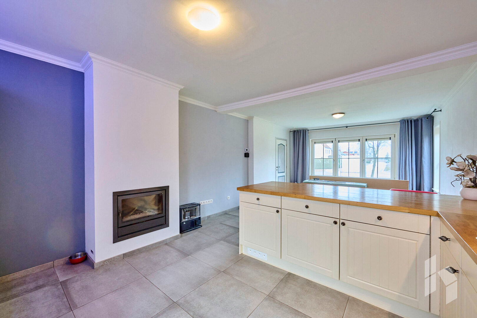 Inkomhal, living met keuken en haard, badkamer, wasplaats, kelder en polyvalente kamer (kapsalon)