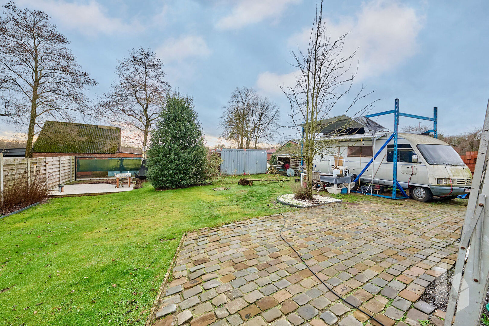 De zonnige tuin is achteraan omheind en heeft nog een garage of tuinberging.