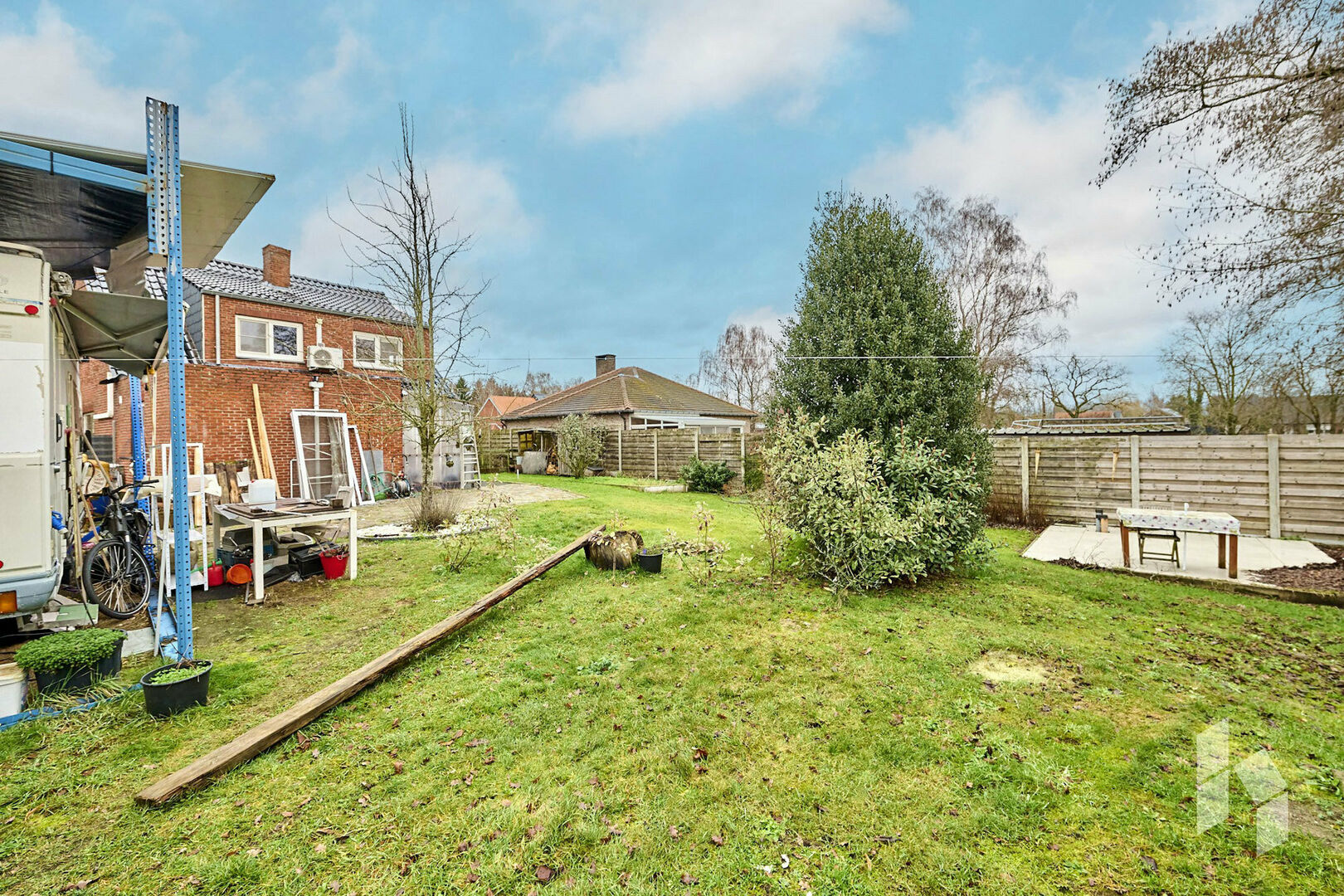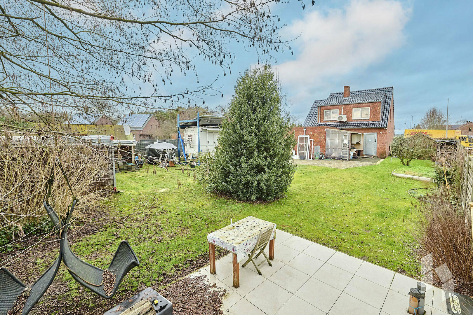 De zonnige tuin is achteraan omheind en heeft nog een garage of tuinberging.