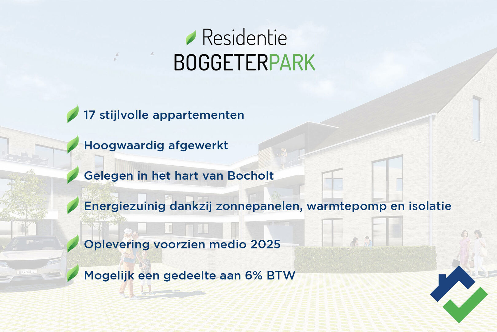 Residentie Boggeterpark is gelegen in het hart van Bocholt met alle leef voorzieningen op loopafstand van uw toekomstige woonst.