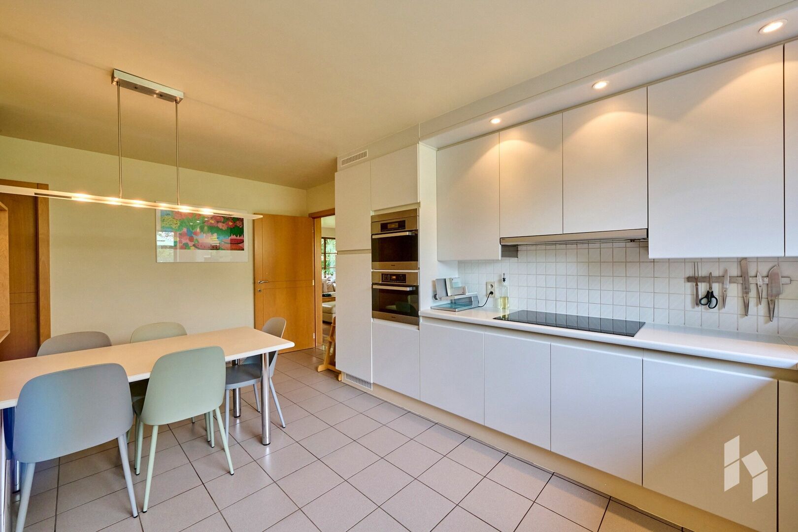 Verder is er op de gelijkvloerse verdieping een keuken met bijkeuken, een apart toilet in de inkomhal en een dubbele inpandige garage.