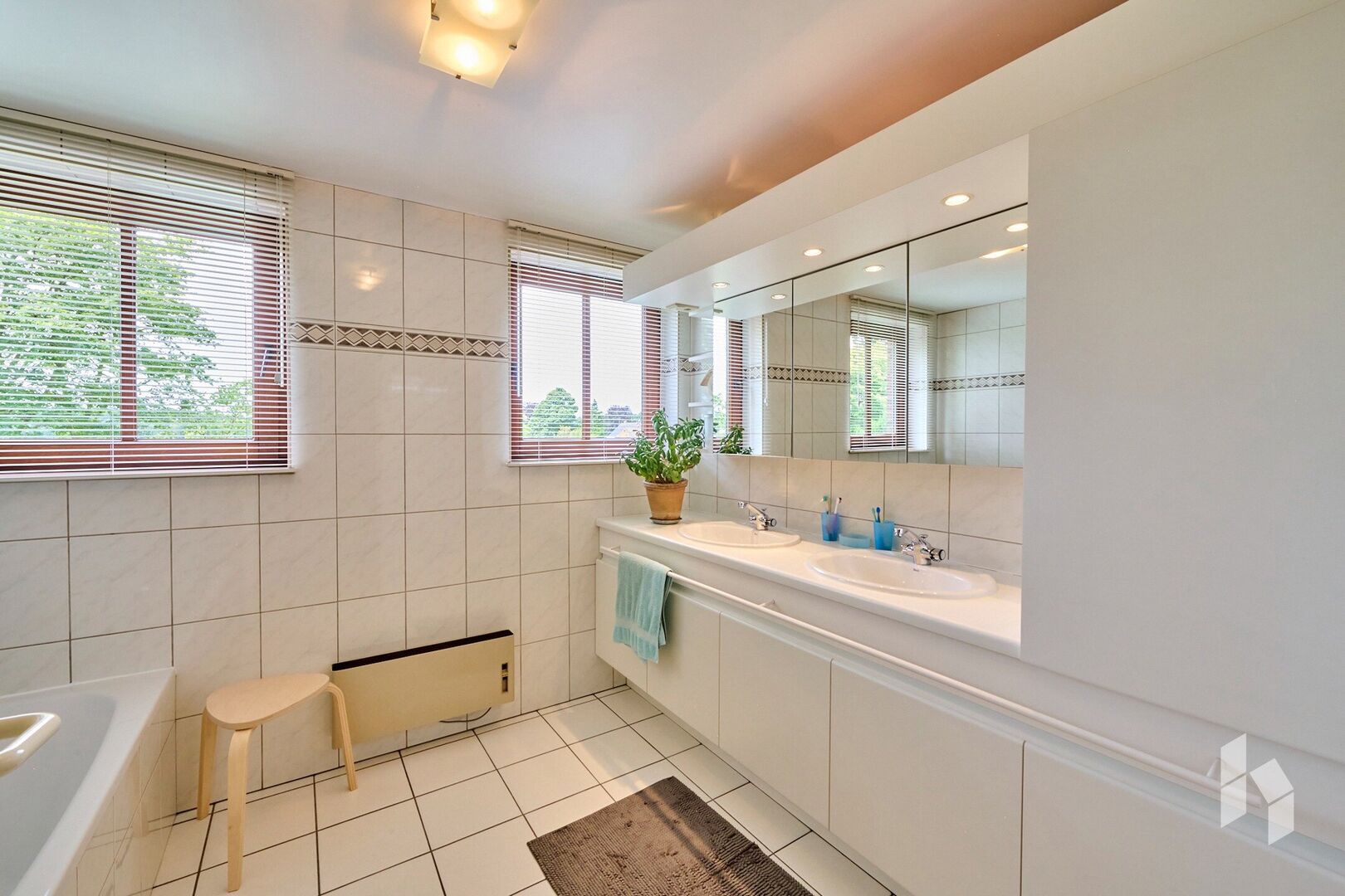 De master bedroom beschikt over een aangrenzende badkamer met dubbele lavabo en douche. Eén van de kamers is bovendien uitgerust met een sauna.