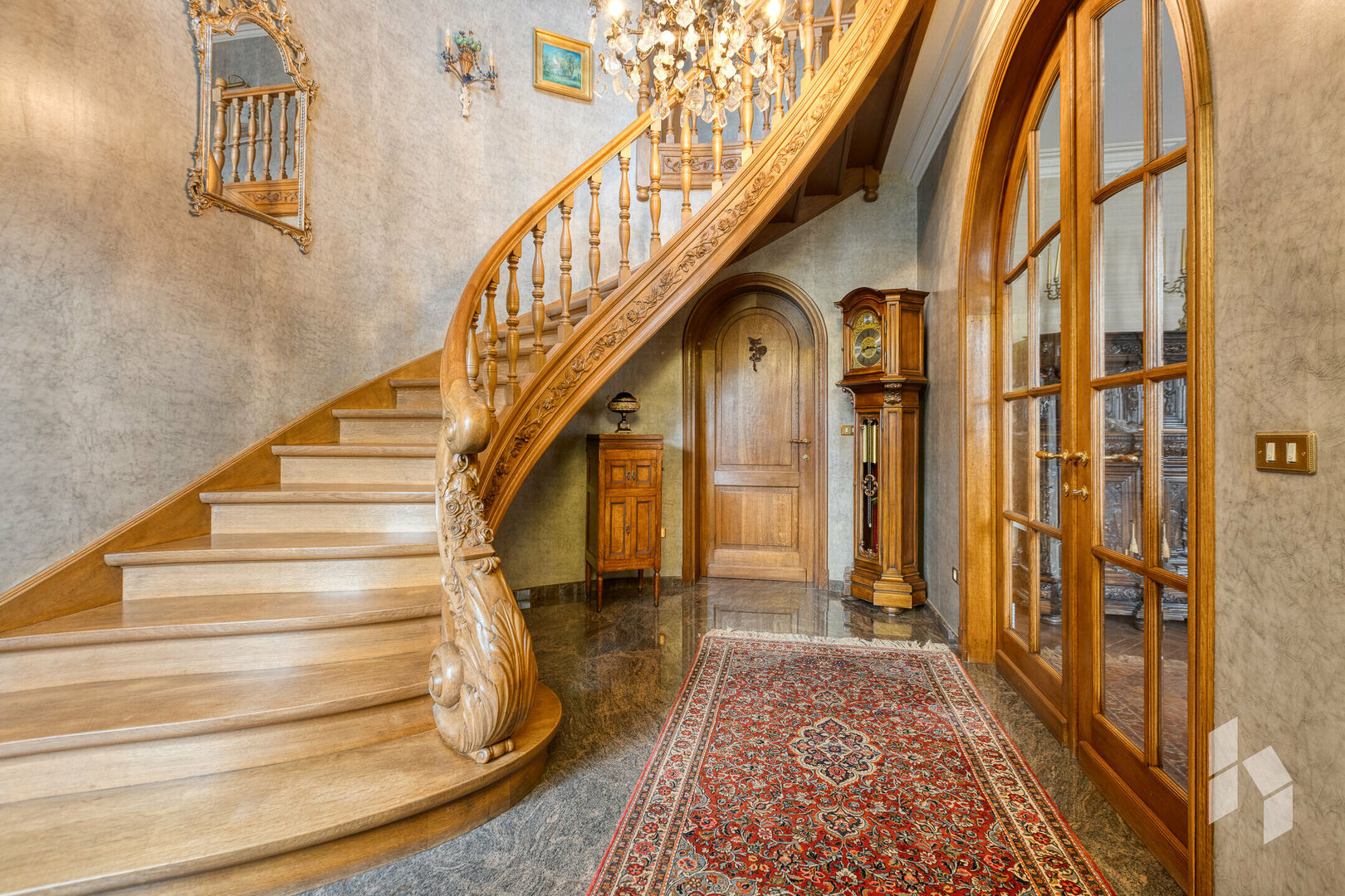 Gelijkvloers kom je binnen via een indrukwekkende inkomhal die toegang geeft tot de gezellige woonkamer en verder doorloopt naar de keuken.